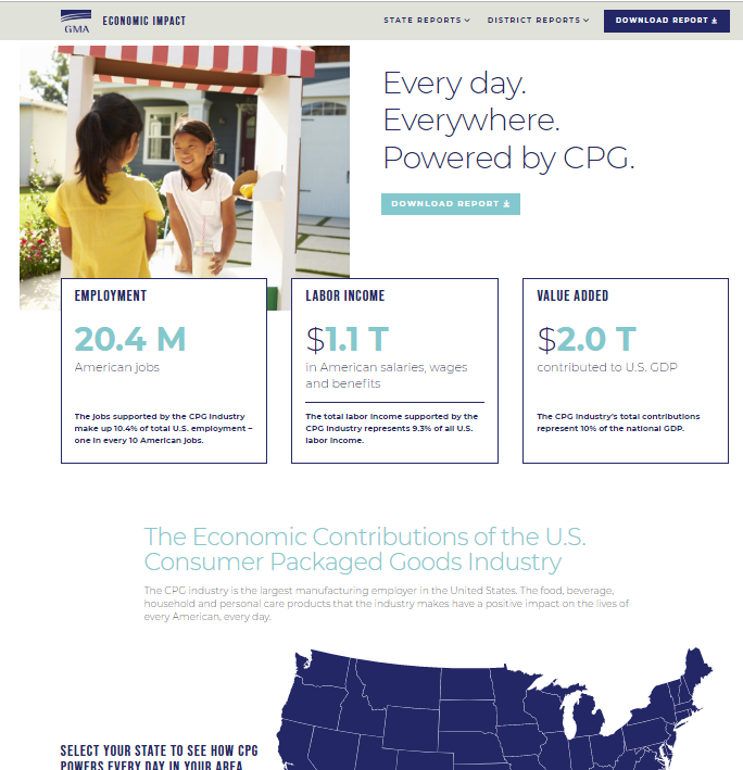 Help the Grocery Manufacturers Association promote a new report developed to prove the deep economic impact of the CPG industry across the United States.